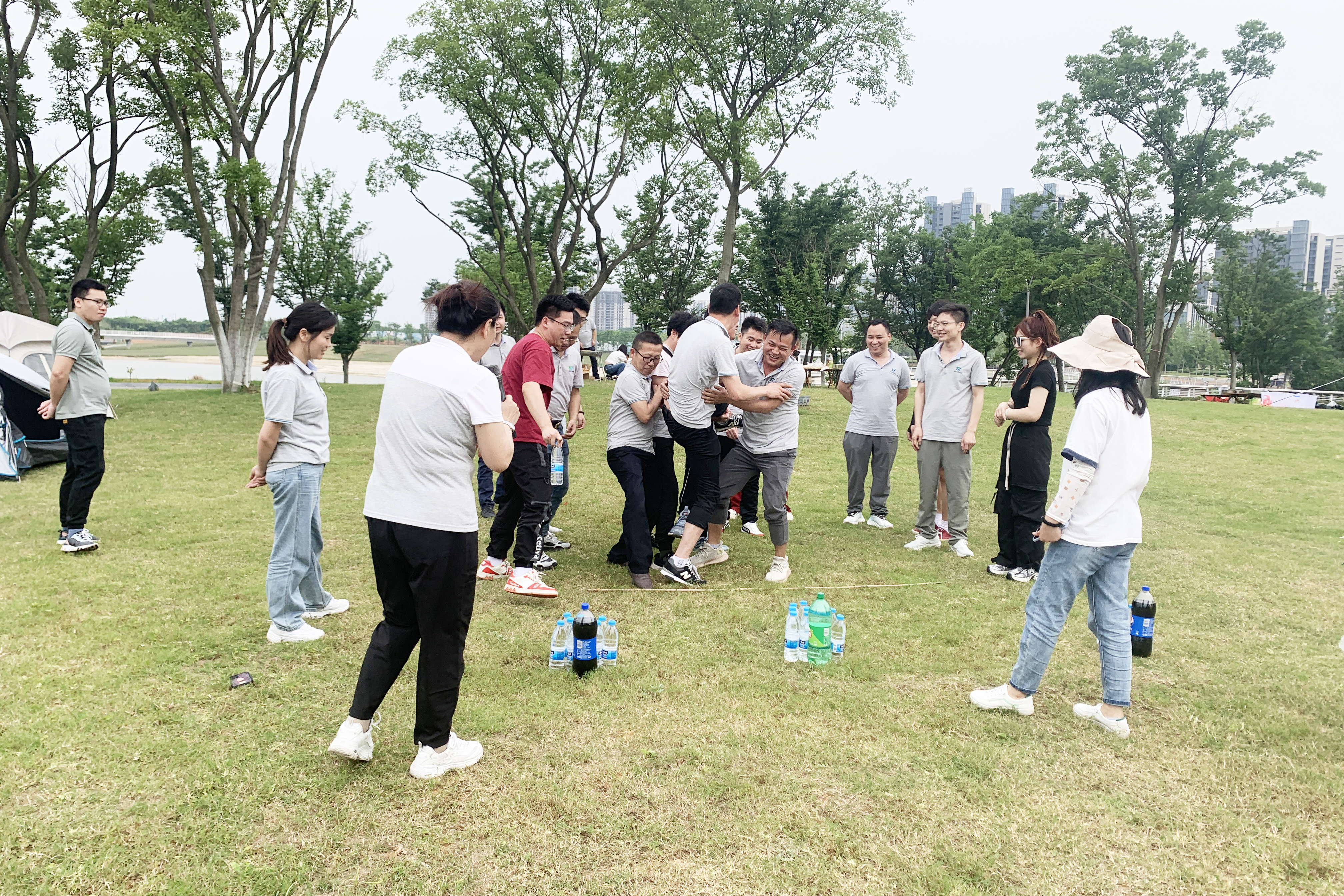 在团队合作的默契配合下,lewin乐玩一起克服重重困难,相信同事,成功取到指定位置的水瓶。
