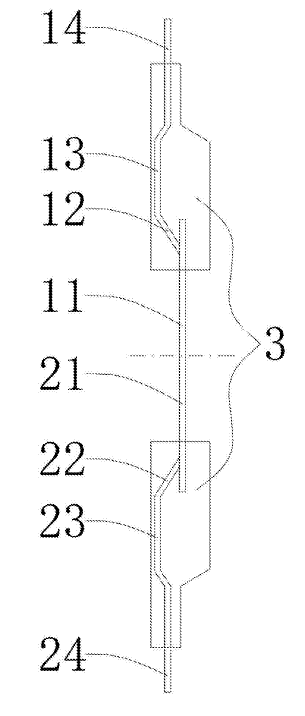 第一载芯板上靠近第一引线一侧设置有两焊脚。